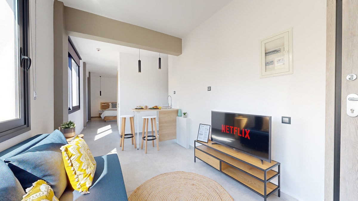 The bohemian style apartment is air-conditioned and soundproofed, has a fully equipped kitchen, dining area, bathroom with separate shower, Wi-Fi 300Mbps, LED Smart TV.